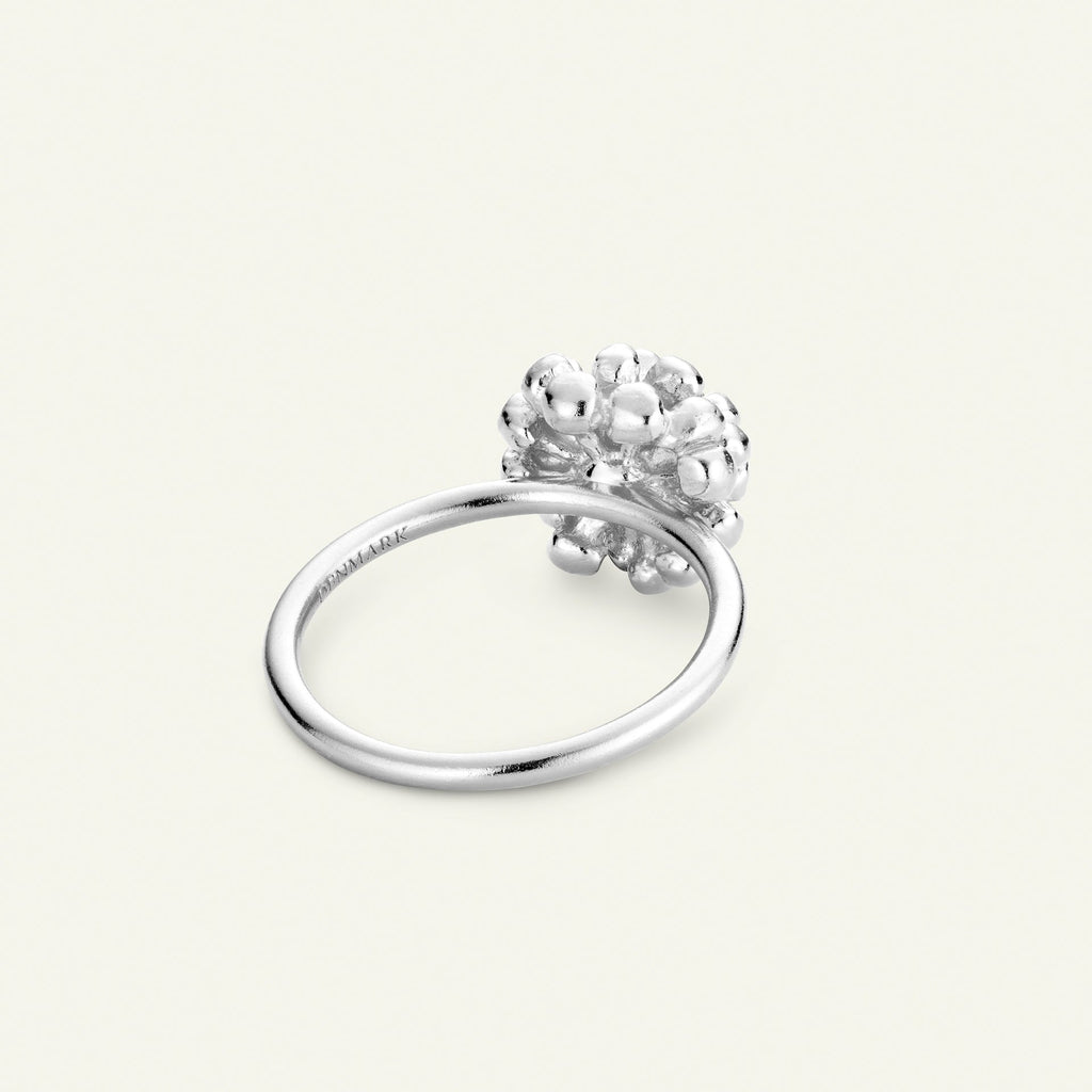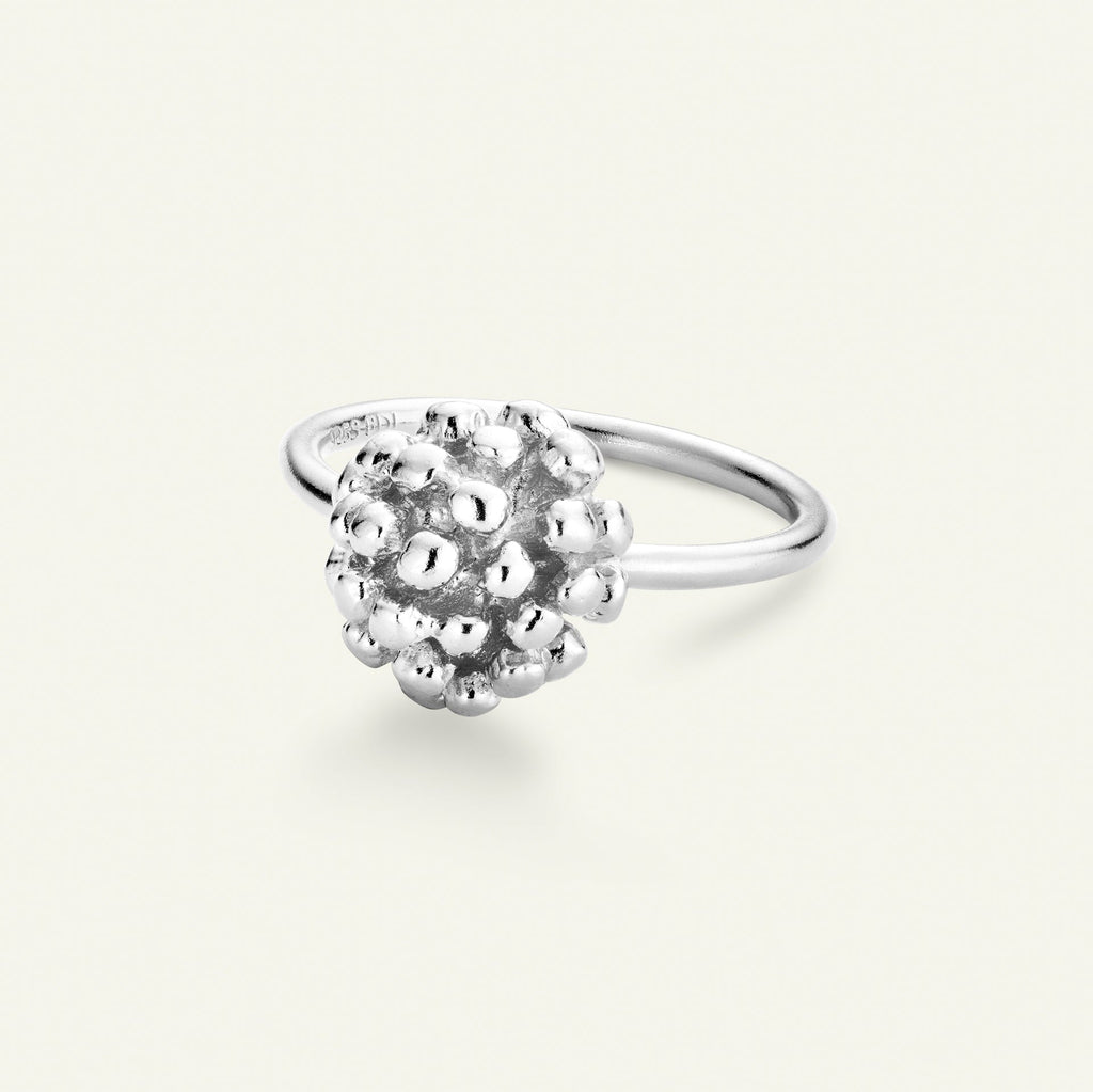 Den elegante lille Dill-ring er laget i sterlingsølv belagt med rhodium. Dillblomsten som brukes til denne ringen, ble plukket i Danmark for mange tiår siden – elsket av kvinner over hele verden for sitt unike og organiske uttrykk.