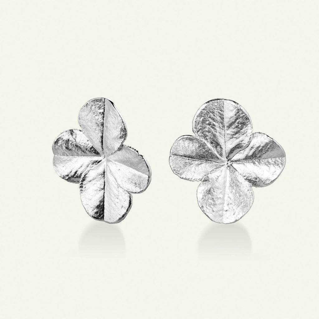 Firkløver Statement Øreclips, sølv