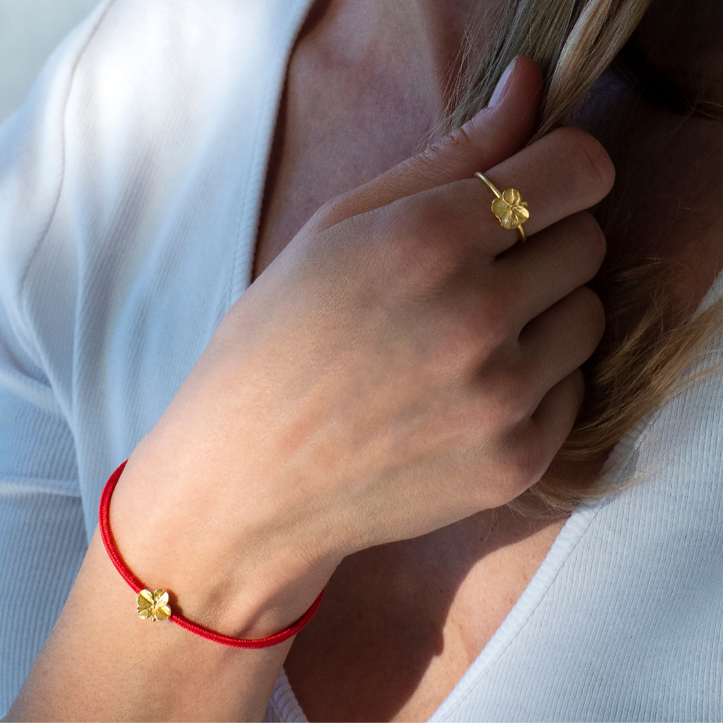 I armbåndet sitter en firkløver, plukket i Danmark på 1950-tallet. Hvert blad i firkløveren representerer verdifulle symboler, og smykket er fullt av mening: Det første bladet står for tro, det andre for håp, det tredje for kjærlighet – og det fjerde bringer lykke. Kun én av 10 000 kløver er en firkløver.