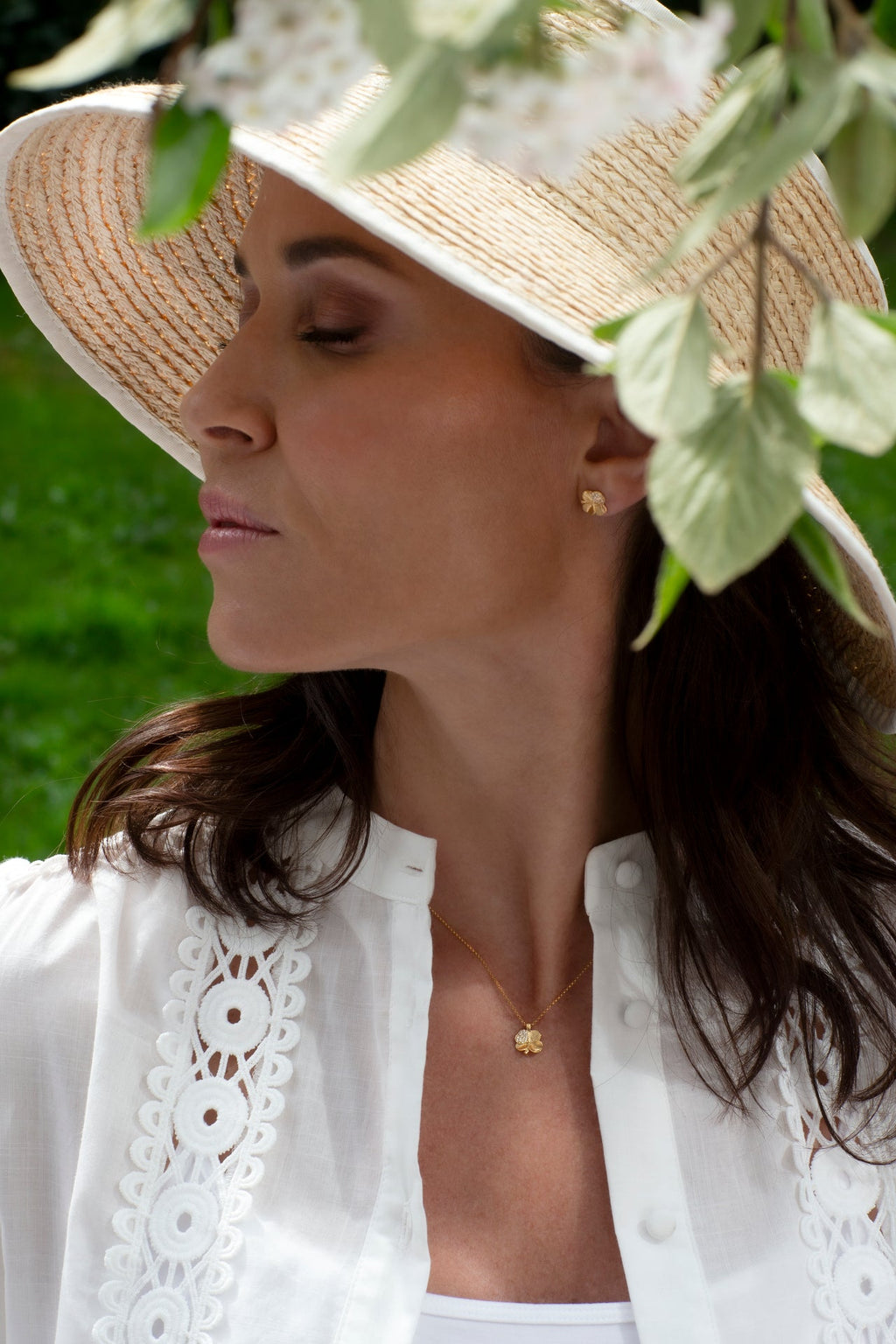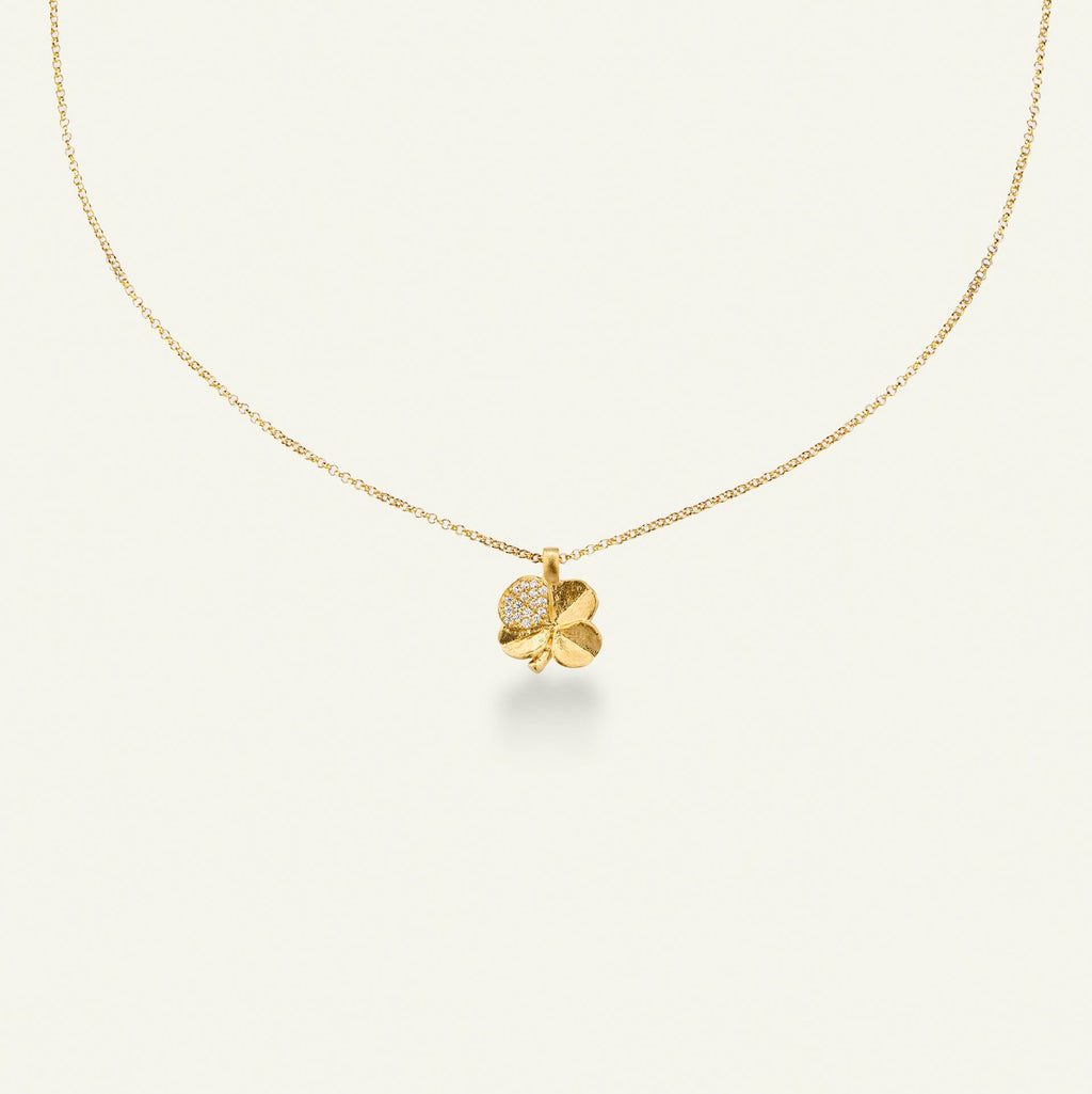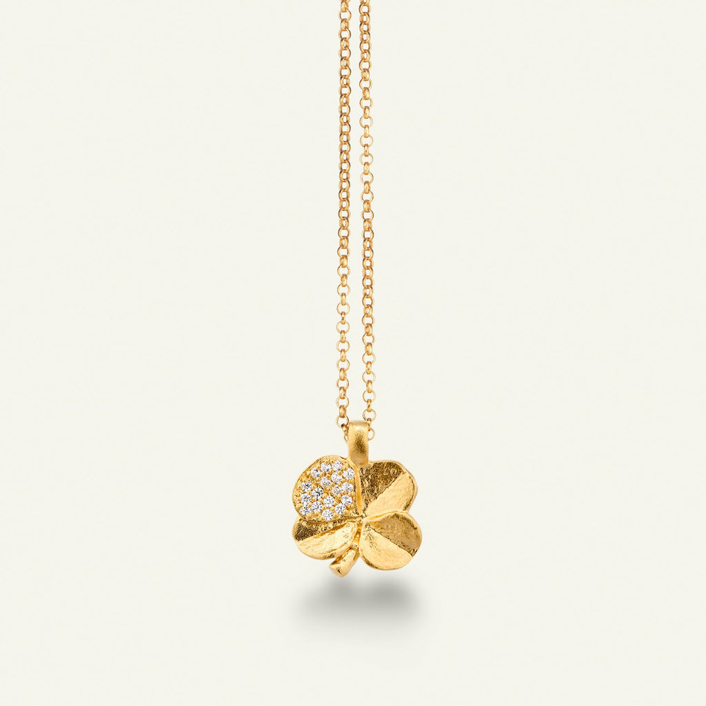 Det ikoniske firkløver-anhenget har vært Flora Danicas bestselger i over syv tiår. Designet er naturens eget, og den ekte firkløveren som ble brukt til dette smykket, ble plukket i Danmark på 1950-tallet og symboliserer tro, håp, kjærlighet – og lykke. Nå i en elegant nytolkning som skiller seg tydelig ut og tilfører ekstra glans til enhver anledning.