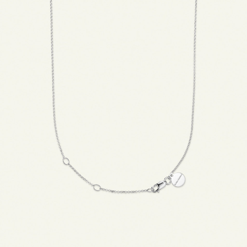Anheng og kjede er laget av 100 % resirkulert 925 sterlingsølv belagt med rhodium.