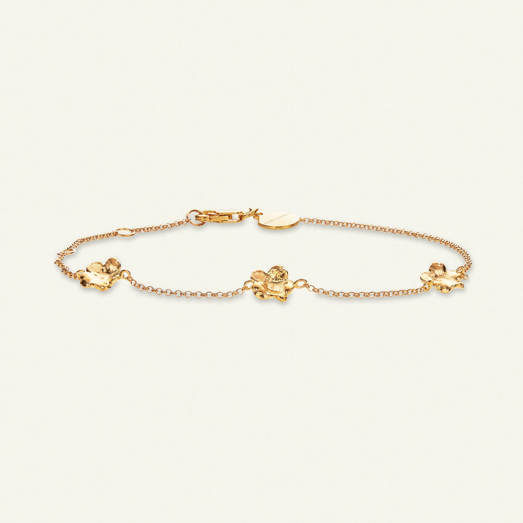 Forglemmegei er en av de mest populære kolleksjonene siden 1952 og symboliserer troskap, kjærlighet og vennskap. Armbåndet har tre små gullbelagte forglemmegei-blomster på en elegant kjede med justerbar lengde (16, 18, 19 cm).