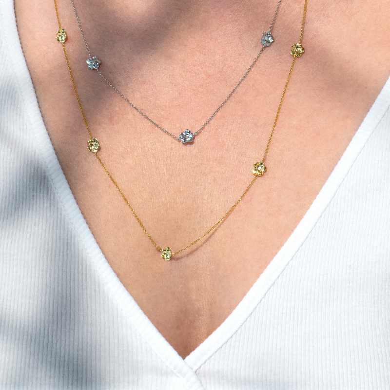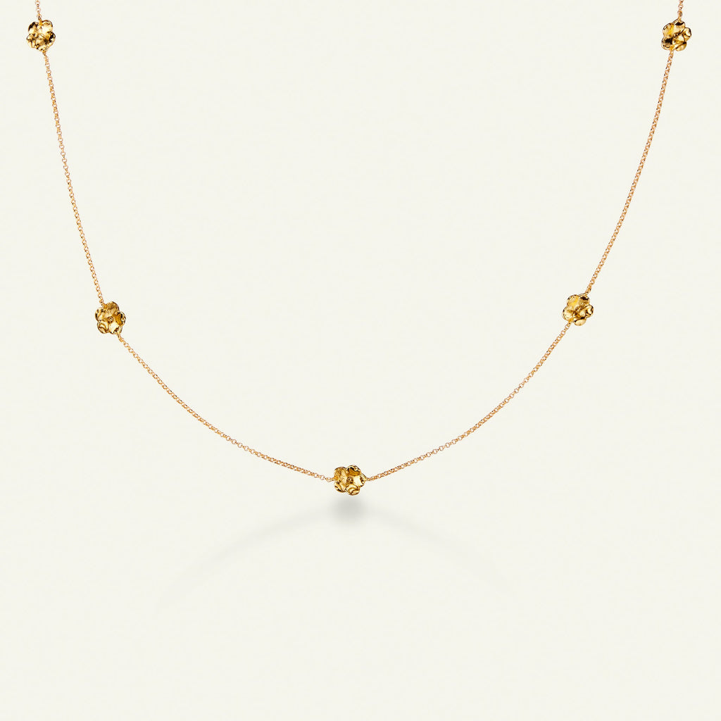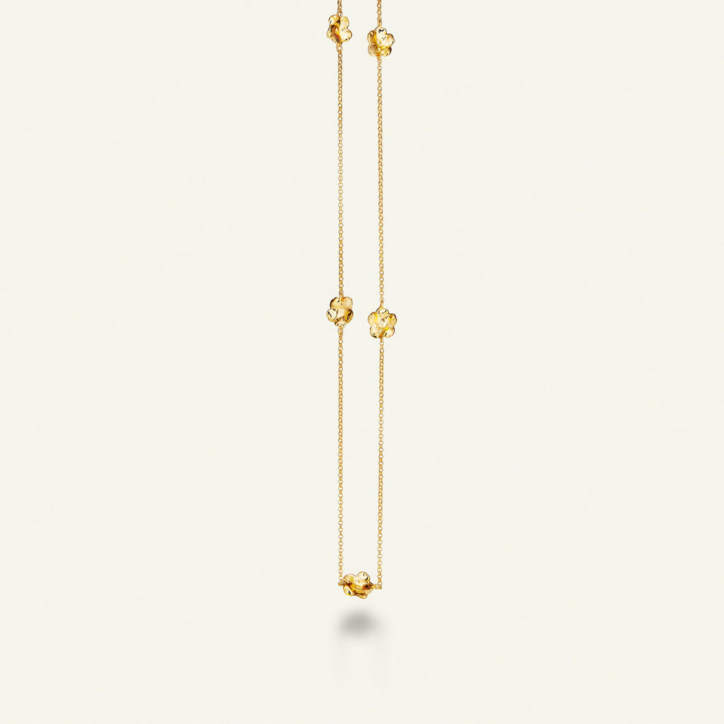 Forglemmegei er en av de mest populære kolleksjonene siden 1952 og symboliserer troskap, kjærlighet og vennskap. Smykket har fem små gullbelagte forglemmegei-blomster på en elegant kjede med justerbar lengde (50, 55, 60 cm). Med sitt enkle og tidløse design er kjeden perfekt til både hverdag og fest.