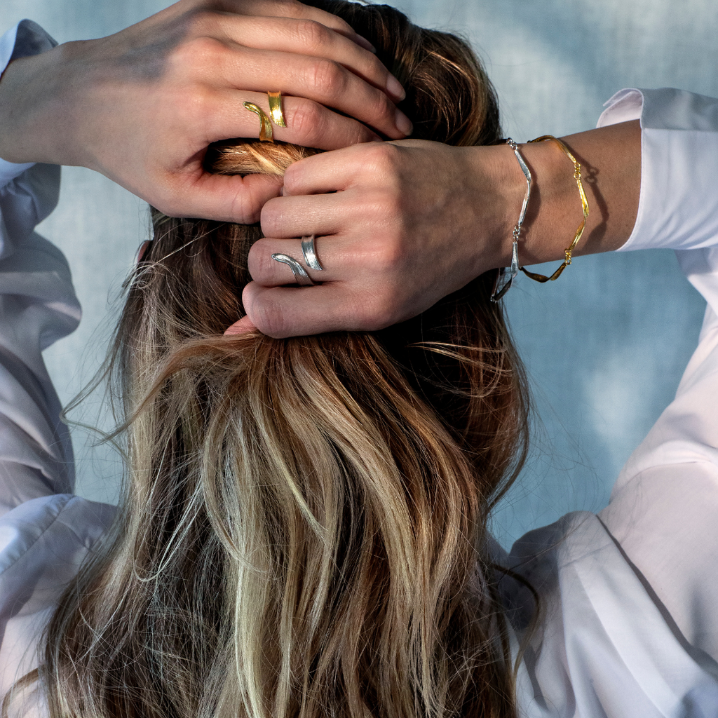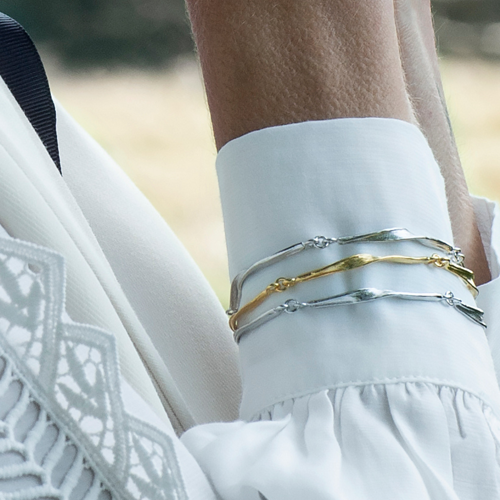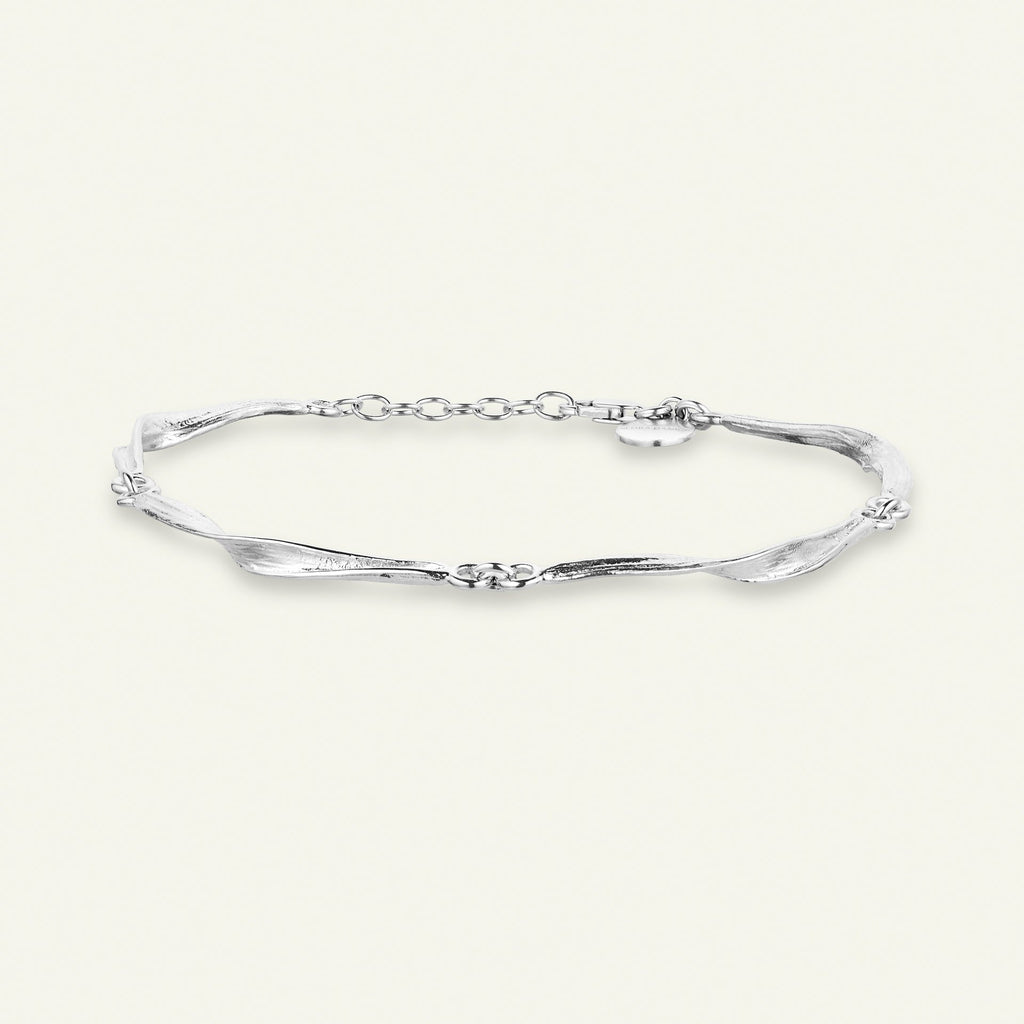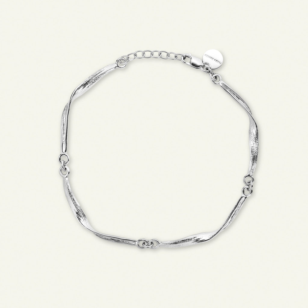 Armbåndet er håndlaget i høy kvalitet og skapt med den største respekt for miljø og bærekraft, både i produksjon og materialvalg. Armbåndet er laget av 100 % resirkulert sterlingsølv belagt med rhodium for enestående glans, kvalitet og holdbarhet.