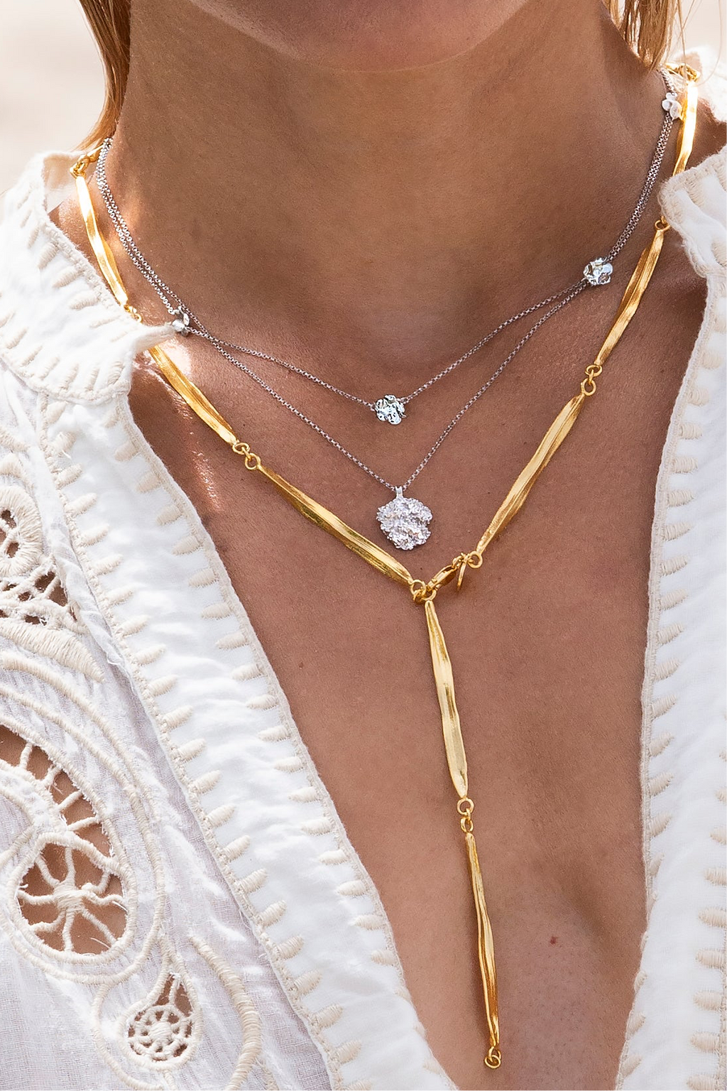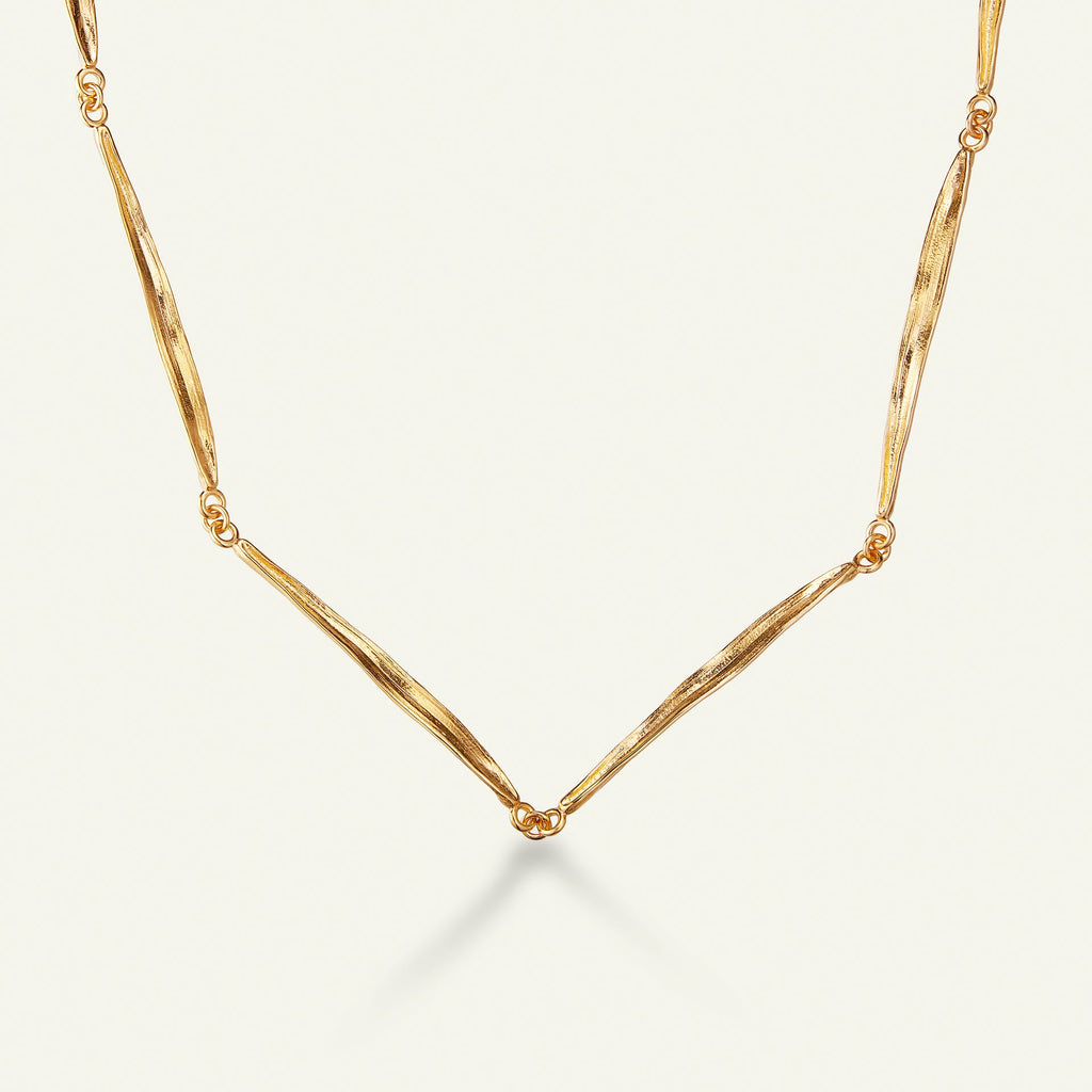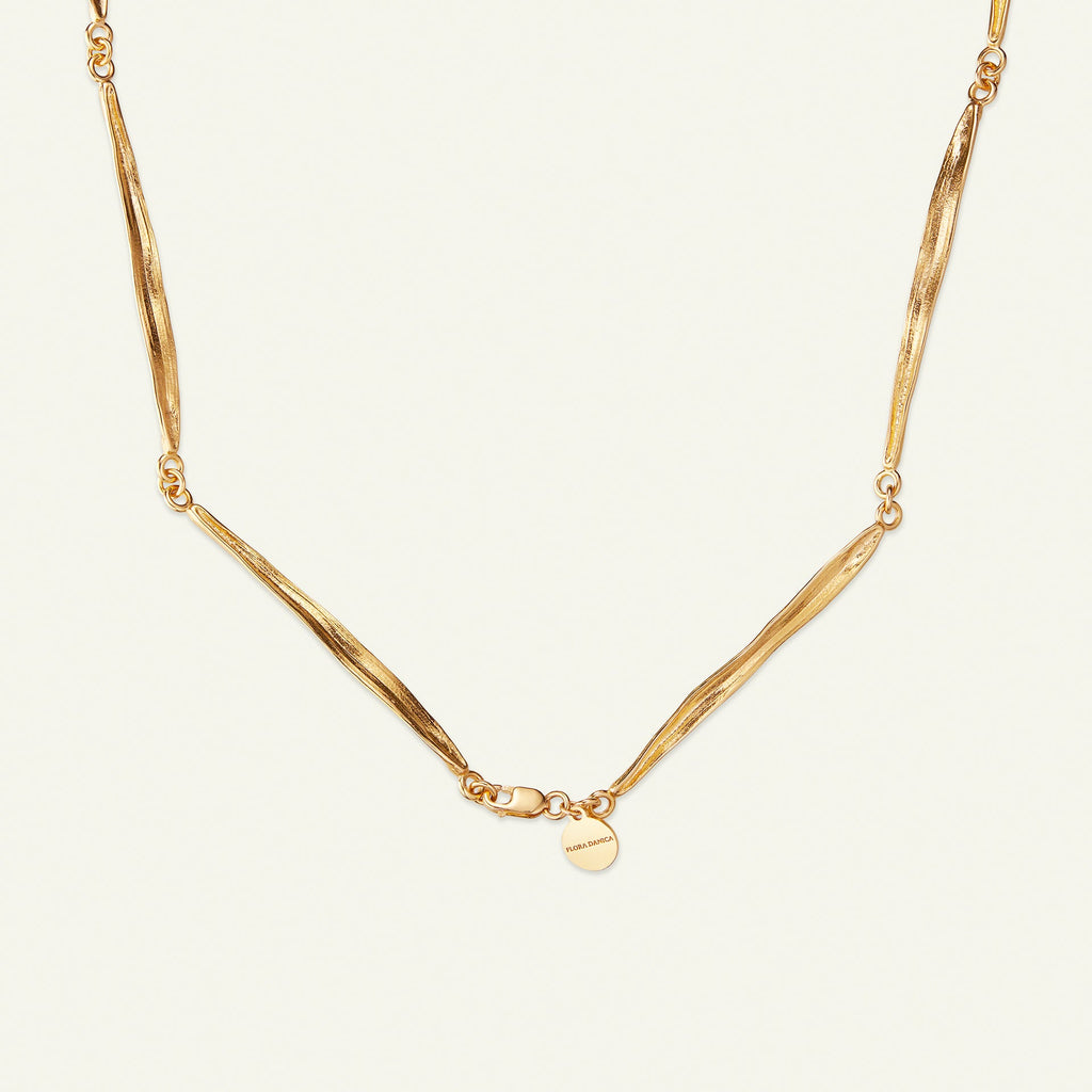 Med sin naturlige og organiske form fremhever Flora Danicas gress-halskjede din egen naturlige skjønnhet. Den elegante kjeden er laget i sterlingsølv forgylt med 22 karat gull – et markant, sofistikert og unikt smykke fra Flora Danicas ikoniske gresskolleksjon.