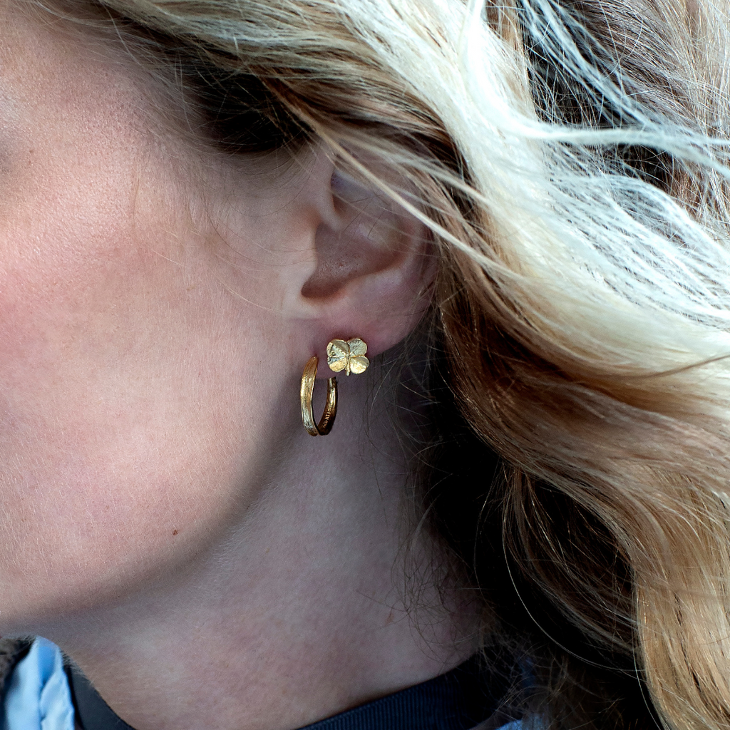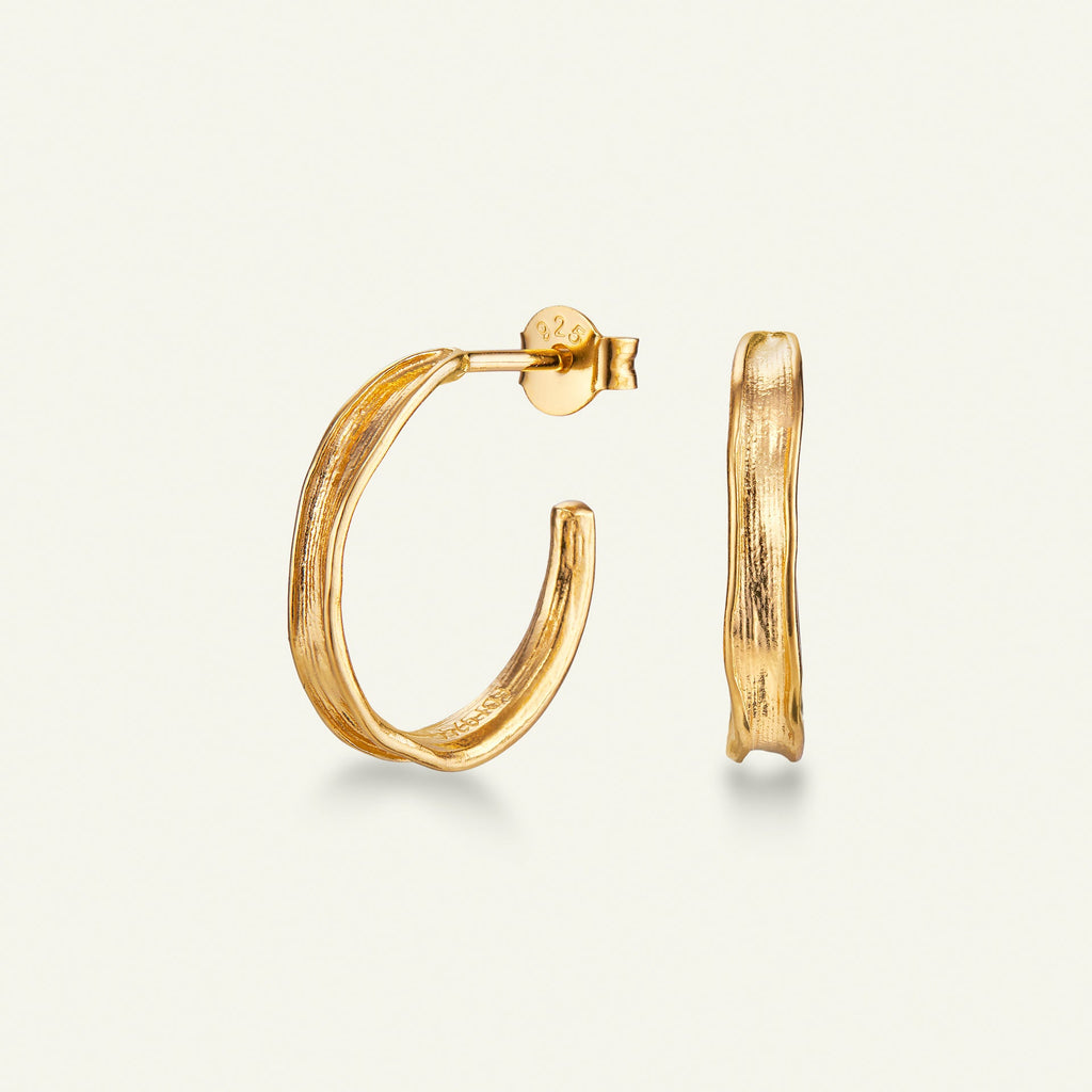 Øreringene finnes enten i 22 karat forgylt sterlingsølv eller i sterlingsølv med et lag av rhodium som sikrer den fineste glans og holdbarhet.
