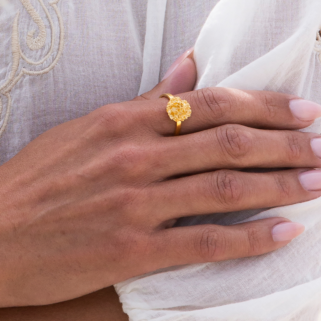 Den klassiske persille-ringen er skapt av en ekte persille. Det unike designet er naturens eget verk, og Flora Danica har med respekt gjenskapt den originale persillen med alle de fine og naturlige detaljene bevart. Ringen er laget i 22 karat forgylt sterlingsølv.