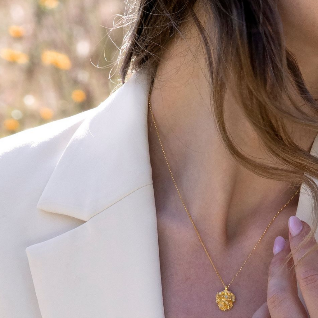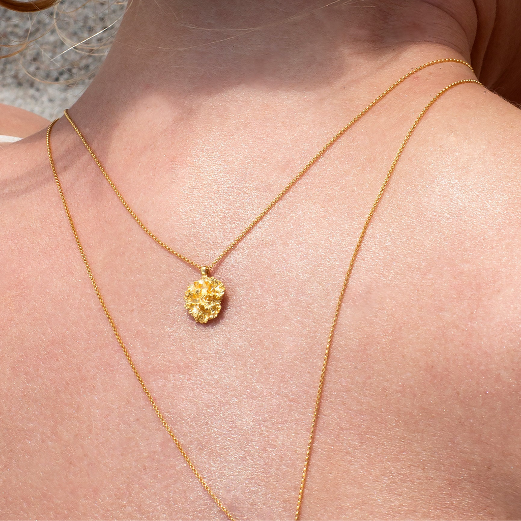 Anheng og kjede er laget i sterlingsølv med en 22 karat forgylling.