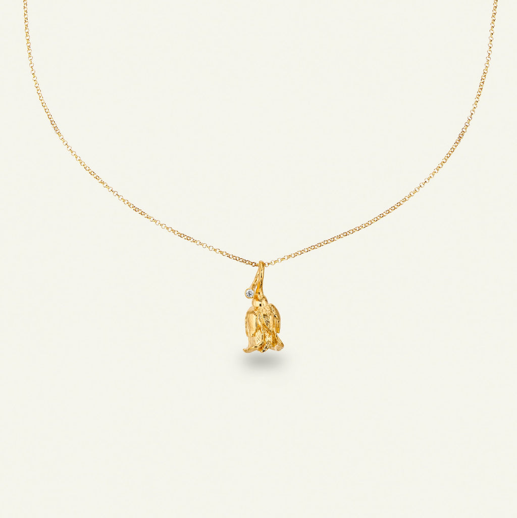 Anhenget er formet etter en ekte dansk rose, bevart i Flora Danicas historiske arkiver og gjenskapt i forgylt sterlingsølv med dyp respekt for naturens fine detaljer. De myke kronbladene og de organiske linjene fremhever rosens naturlige ynde. I stilken sitter en glitrende diamant som tilfører smykket et eksklusivt og raffinert uttrykk.