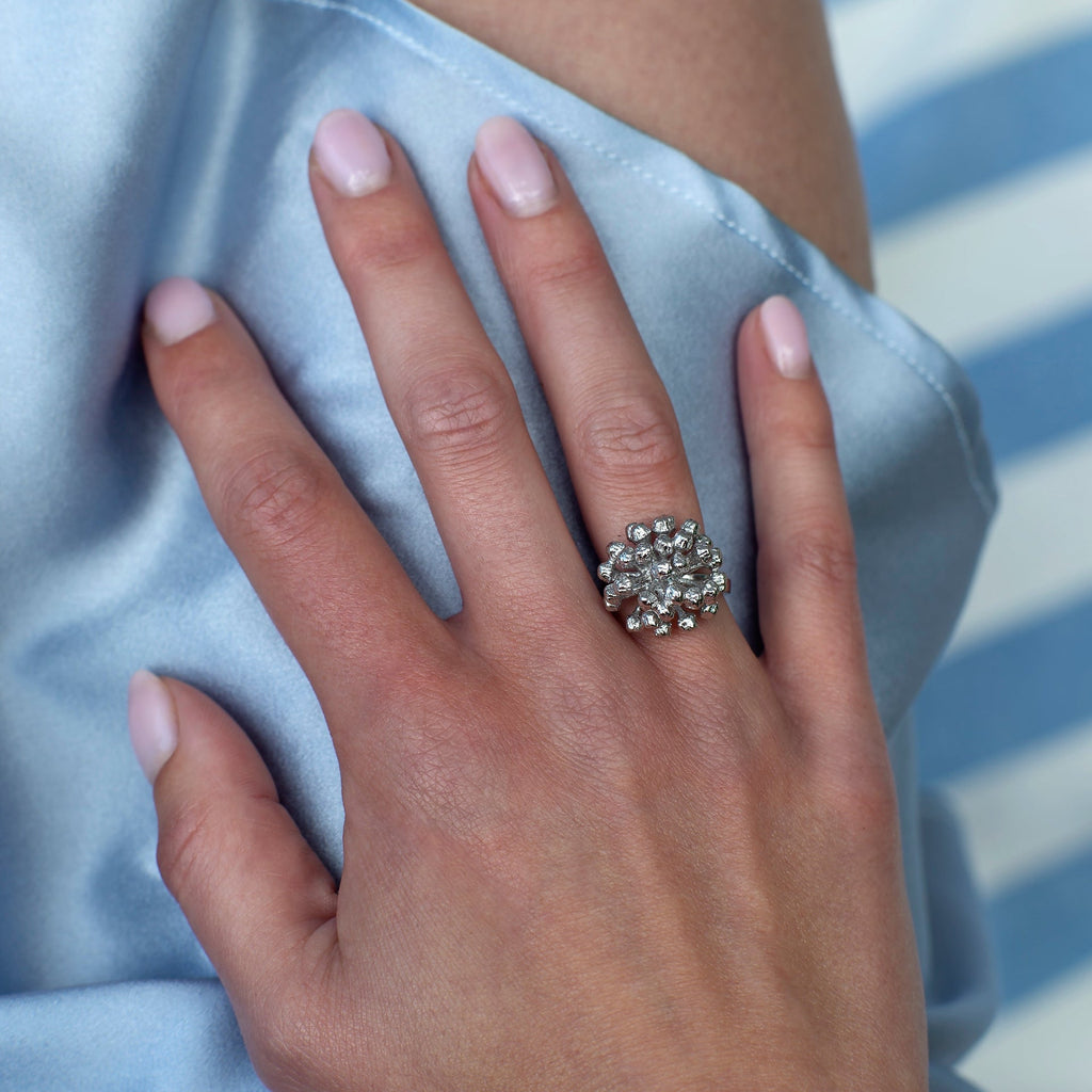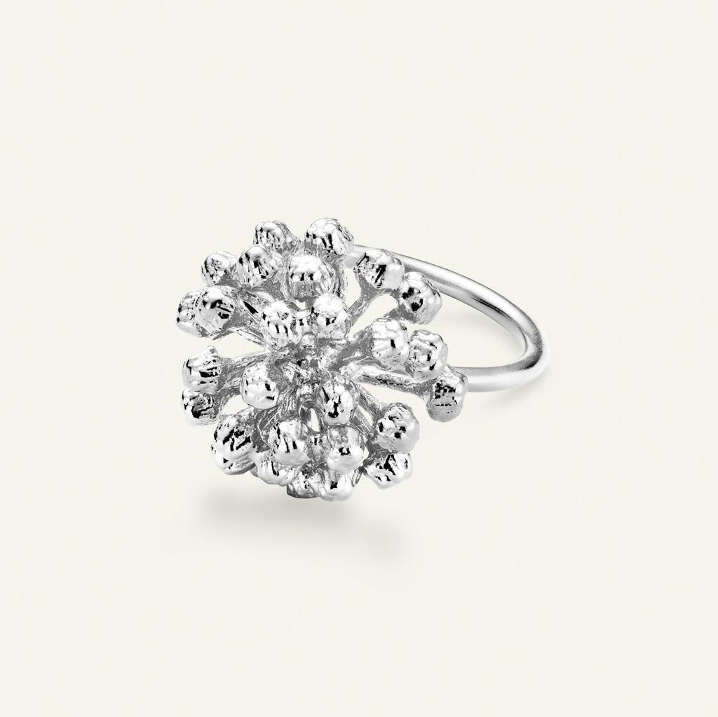 Den ikoniske store Dill-ring er skapt av en ekte dillblomst som ble plukket i den danske naturen på 1950-tallet. En moderne klassiker som med sitt unike uttrykk har begeistret kvinner over hele verden i mange tiår.