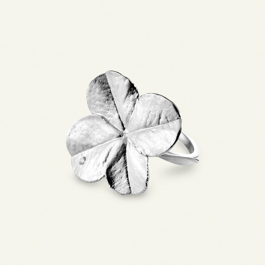 Den store Firkløver-ringen er den mest ikoniske og populære ringen fra Flora Danica. De fire bladene representerer tro, håp, kjærlighet – og det fjerde, svært sjeldne bladet symboliserer lykke.